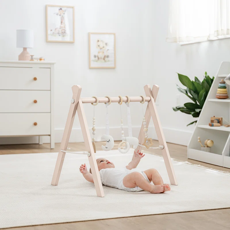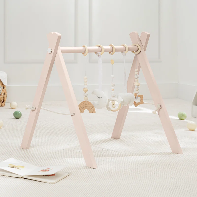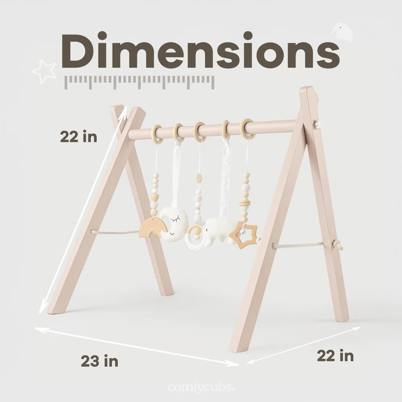 Made from durable, high-quality wood with a natural finish, this play gym complements any home decor. Its minimalist, elegant design blends seamlessly into modern or traditional spaces. - Stimulating Sensory Toys: