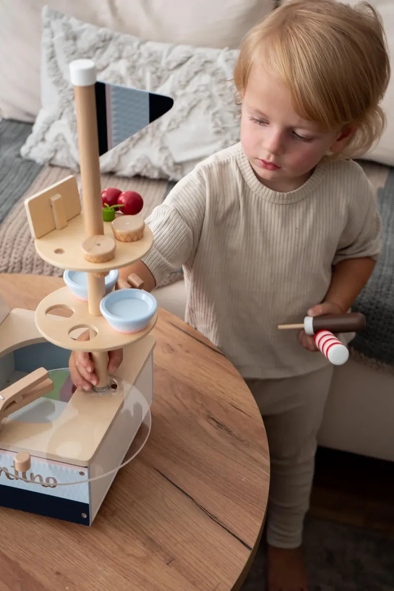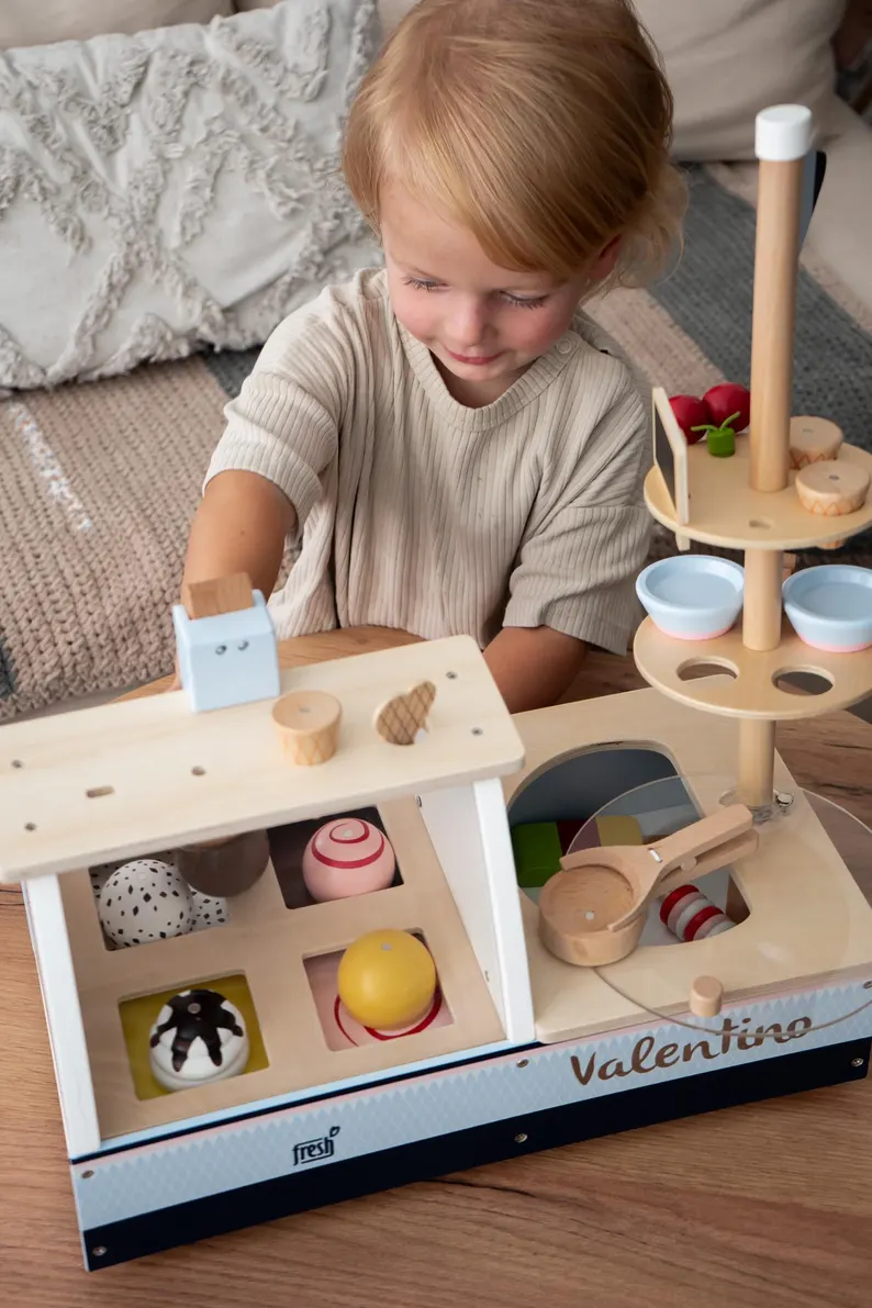 step into the enchanting world of our wooden ice cream parlor, designed especially for children! This charming play space features a vibrant and colorful setup, with handcrafted wooden counters, scoop stations, and delightful props that inspire creativity and fun. Kids can serve up their favorite pretend ice cream flavors while developing social and imaginative skills. The eco-friendly materials ensure it’s safe and durable, while the playful design captivates little ones. With its unique, whimsical theme, it’s perfect for homes, playrooms, or even classrooms. Each detail, from the mini cones to the scoopers, is crafted for interactive fun. Watch as your child’s face lights up in this dream play experience, filled with laughter and joy.