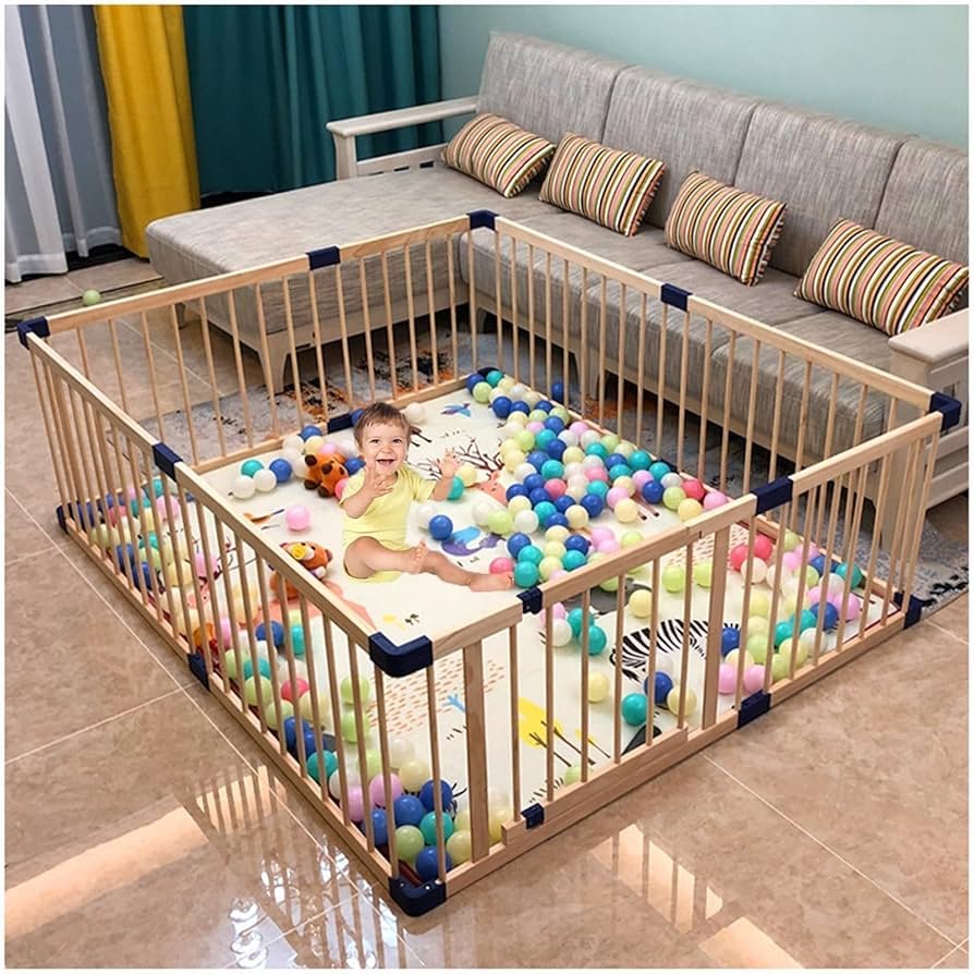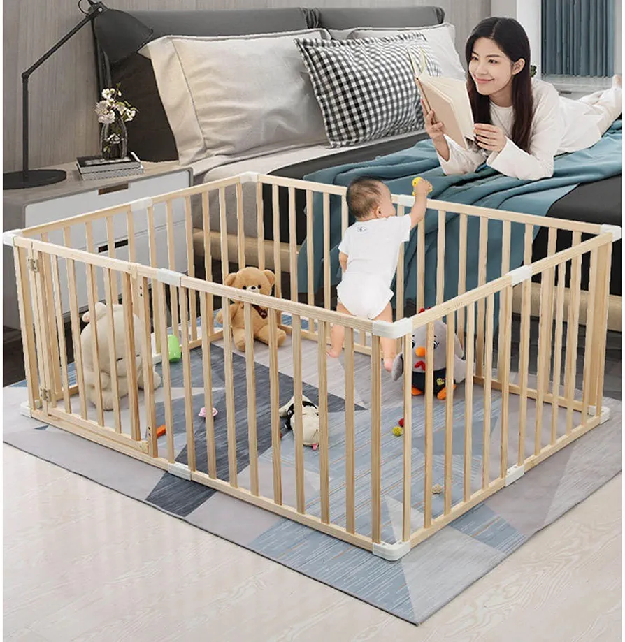 Baby playpen, wooden play yard, child safety gate, eco-friendly play area, modern baby enclosure. 🌟