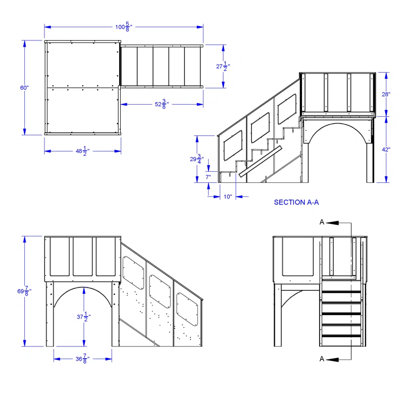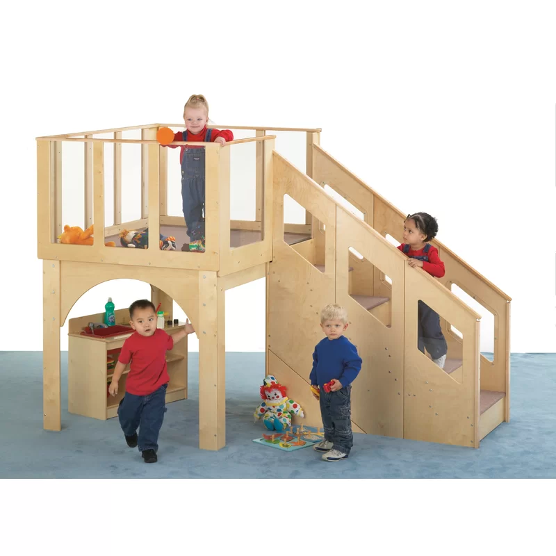 Underneath the deck, create a cozy reading nook or an exciting dramatic play area, sparking imaginative adventures. The five wide, carpeted steps provide safe and easy access to the top, while the spacious, carpeted deck offers a comfortable place for children to observe, rest, or play.