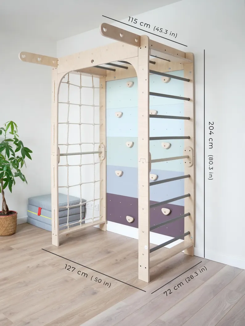 Turn your child’s room into a mini adventure zone! Our handcrafted Climbing gym playset for kids is designed to spark imagination, build strength, and keep little ones moving — all within the safety of your home. Made from solid, non-toxic wood, this Montessori-inspired play gym encourages active play, coordination, and confidence from an early age.